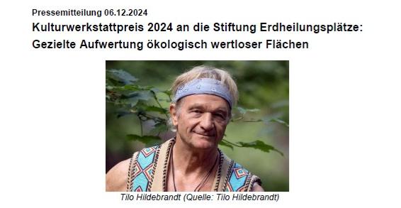 Mit großer Freude und Dankbarkeit teilen wir mit, dass die Stiftung Erdheilungsplätze mit dem Kulturwerkstattpreis 2024 ausgezeichnet wurde. Diese Ehrung wird vom gemeinnützigen Verein Kulturwerkstatt-Dreiländereck e.V. verliehen und würdigt unser Engagement für die ökologische Aufwertung und Renaturierung von Flächen.