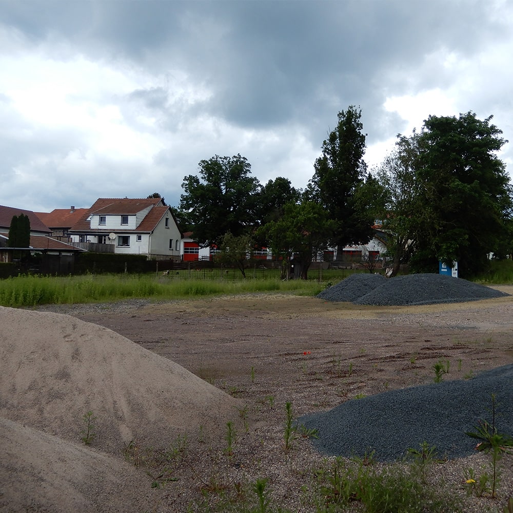 Der Anblick im Frühjahr 2024 war unschön: Reste von Bauschutt, Kiesflächen, ein altes Dixie-Klo und die Spuren eines ehemaligen Kanals prägen das Bild. Und doch liegt in der Fläche ein großer Wert: Denn indem wir diesen Ort zurück in die Hände der Natur geben, leisten wir echte Heilungsarbeit – für die Erde und für uns selbst.