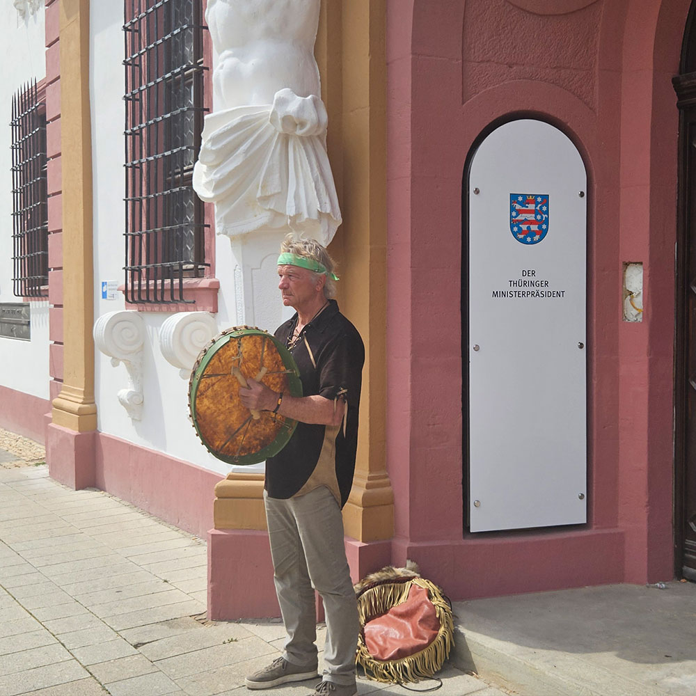 Tilo trommelt vor deutschen Staatskanzleien. Im Auftaktartikel geht es darum, was ihn dabei antreibt: Trommeln für die Erde.